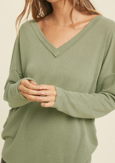 HACCI KNIT TOP WITH RUCHED BACK DETAIL IN OLIVE