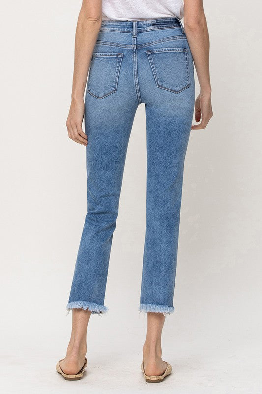 VERVET KNEE SLIT FREY HEM CROP STRAIGHT