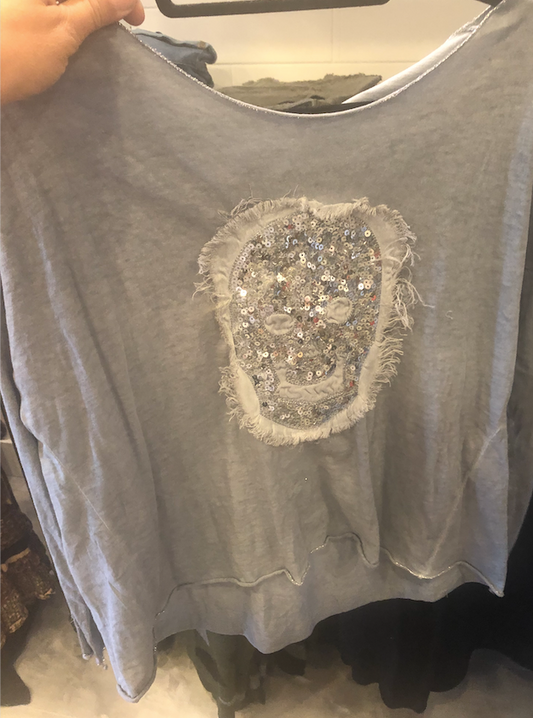 SKULL TOP IN GREY OR BLACK BY SCANDAL ONE SIZE