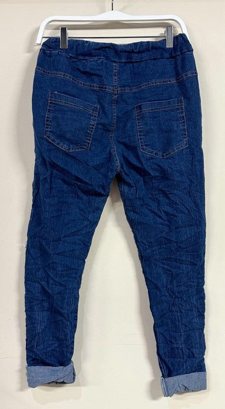 STAR SQUARE PATCHWORK CRINKLE DENIM JOGGERS