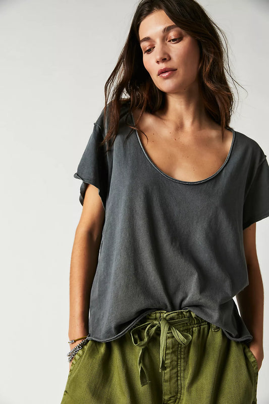 FREE PEOPLE DYLAN TEE IN CHARCOAL AND WHITE