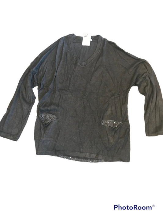 CHARCOAL SEQUINED BACK TOP