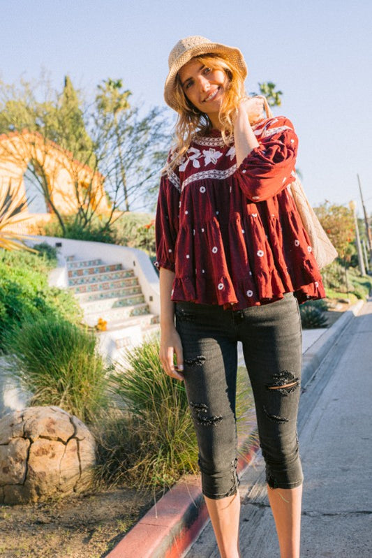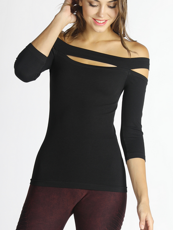 NIKIBIKI Off Shoulder Keyhole 3Q Top IN WHITE, BLACK AND BURGUNDY