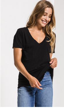 Z SUPPLY COTTON SLUB POCKET TEE IN BLACK AND BLUE