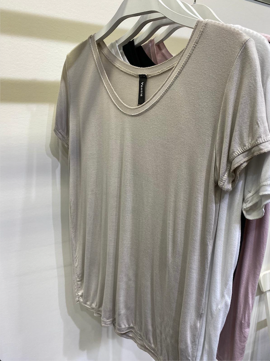 DOUBLE SEAM S/S TOP IN BLACK OR WHITE
