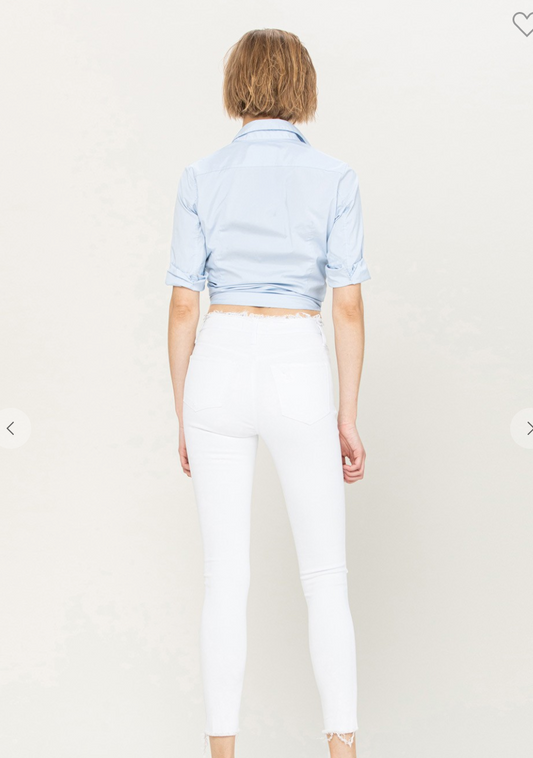 VERVET MID RISE FRAYED WAISTBAND & HEM CROP SKINNY