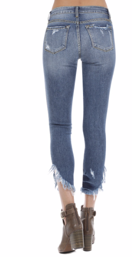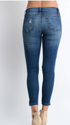 KAN CAN High Rise Hem Detail Ankle Skinny Jeans - KC8395D