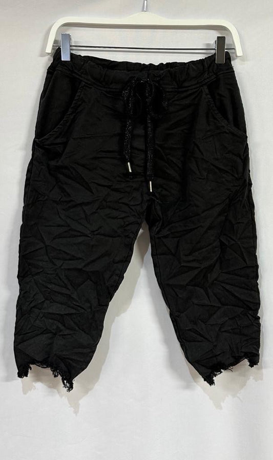 SOLID CRINKLE FRINGE HEM BERMUDA SHORTS IN BLACK AND WHITE