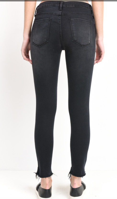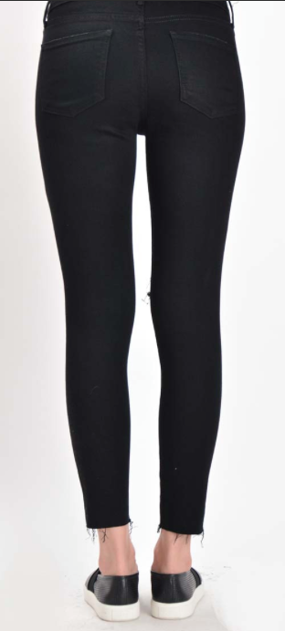 JUST BLACK DISTRESSED FRAY HEM SKINNY IN BLACK