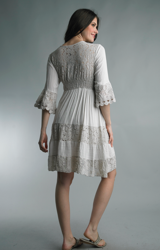 DEX SP24 LINEN BLEND MIDI DRESS IN WHEAT
