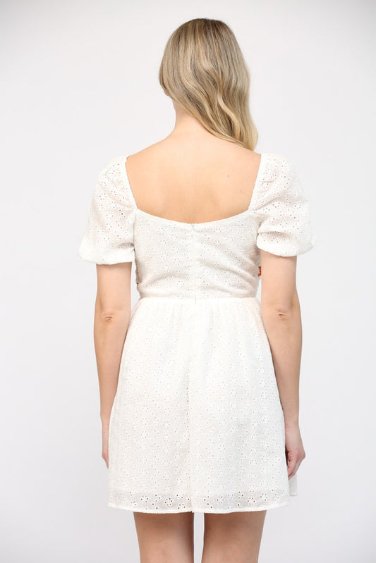 CROCHET TRIMMED PUFF SLV BRODERIE DRESS