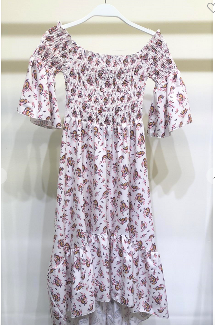 PAISLEY PRINT SMOCKED HIGH-LOW DRESS