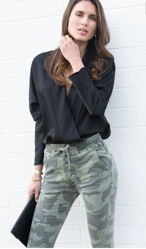 ELASTIC WAISTBAND CRINKLE DENIM PANTS in ARMY GREEN CAMO