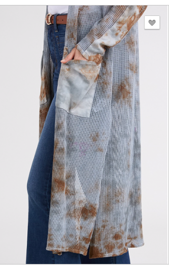 TIE DYE FISHNET LONG OPEN CARDIGAN WITH POCKETS