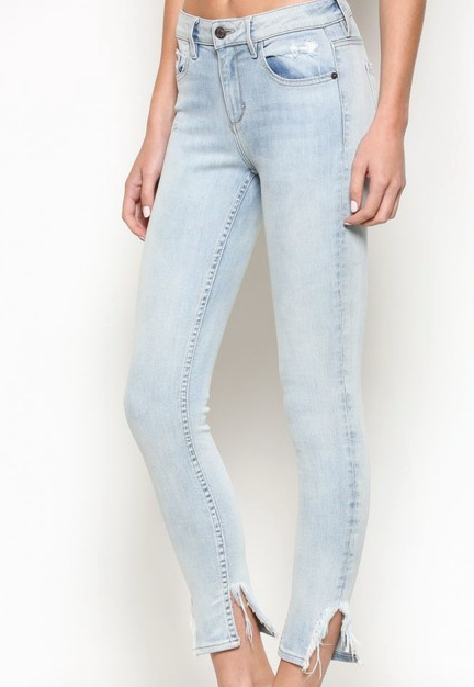 HIDDEN Super Light Wash Split Frayed Hem Skinny