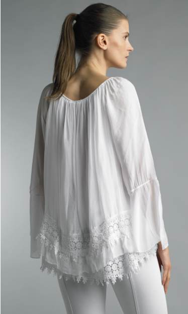 LONG SLEEVE DRAPED FOLD FRONT X STRAP TOP in WHITE