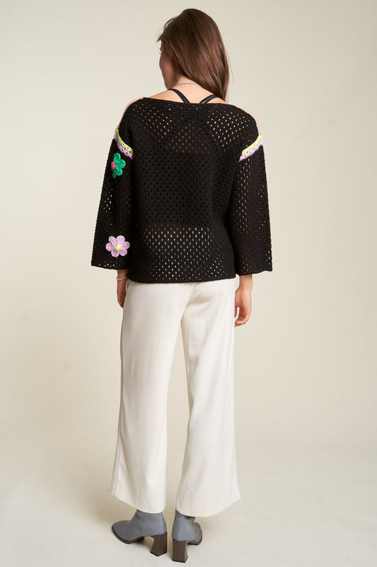 PLUS CHROCHET FLOWER PATCHED SWEATER
