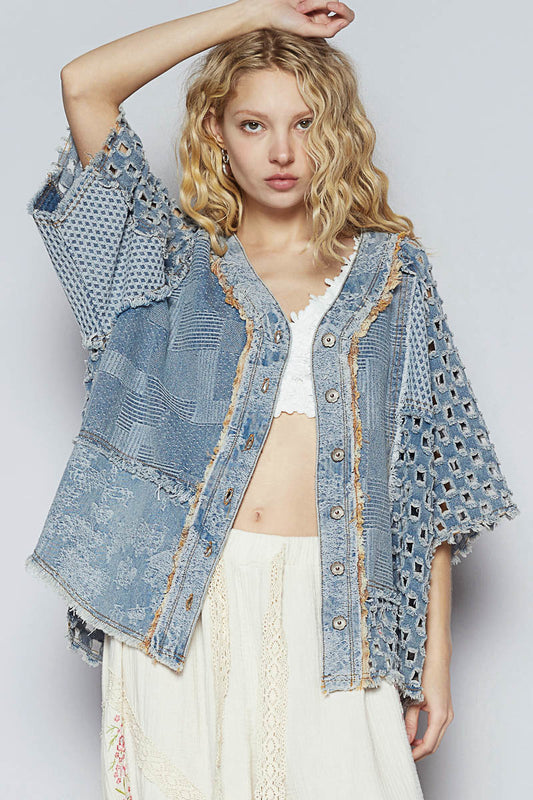Western Boho Chic: Tiered Patchwork Denim Cropped Shrug