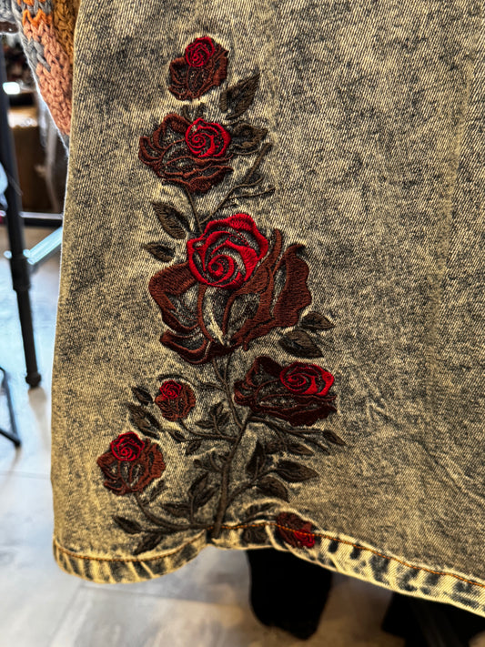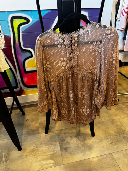 GREY MIINERAL WASH WITH CROCHET DETAIL TOP