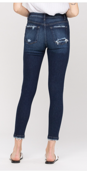 VERVET HIGH RISE DISTRESSED ANKLE SKINNY