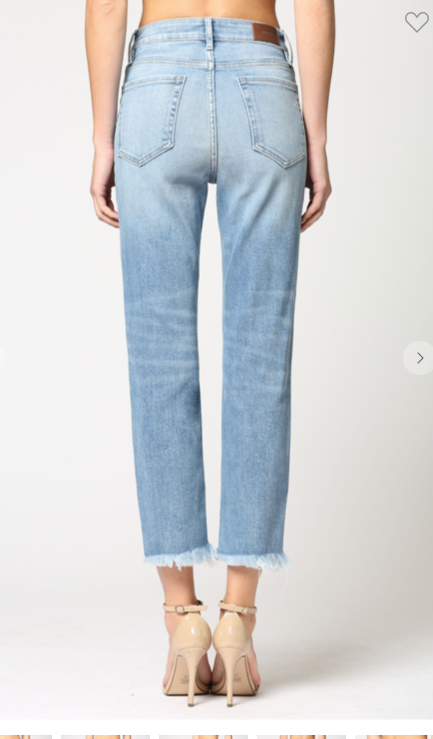 HIDDEN HIGH RISE MOM JEANS WITH FRAY HEM