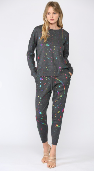 METALLIC SIDE STRIPE STAR SEQUIN CRINKLE JOGGER
