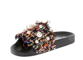 Pearl Accent Multi color upper material Slip on Slides.