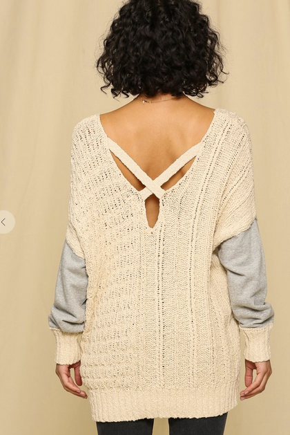 X Back Cable Knit 2 tone Pullover Sweater
