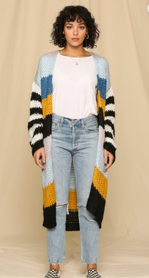 Multi stripe lets have some fun knitted long cardigan 100 % cotton