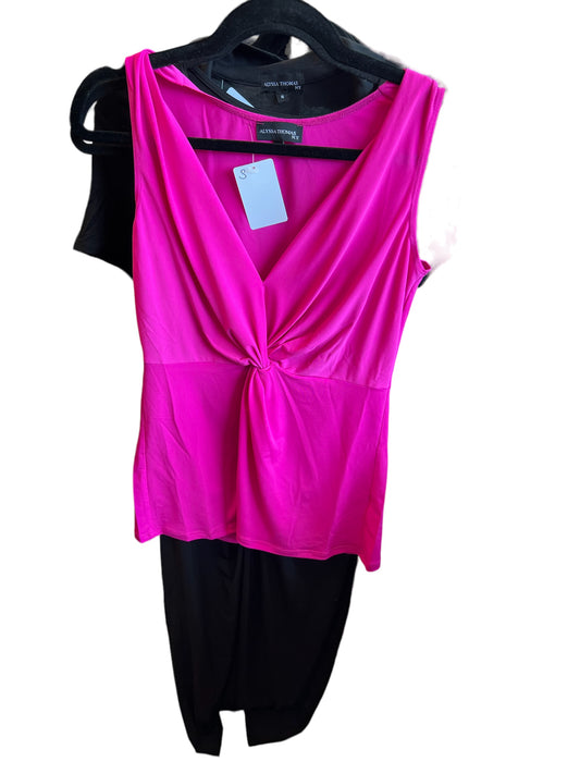 ALYSSA THOMAS KNOT FRONT TOP IN BLACK AND FUSCHIA