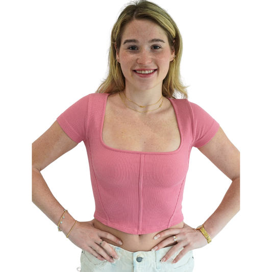 SUZETTE Ribbed Seamless Square Neck Cap Sleeve Corset IN CASHMERE ROSE