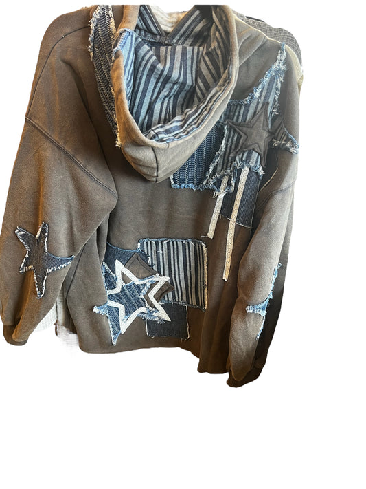 MINERal WASH HOODIE WITH STAR APPLIQUES