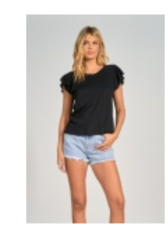 ELAN SP23 BLACK RUFFLED SLEEVE TOP